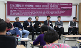 천호선 참여당 전 최고위원의 전통 진보정당의 노동중심성에 대한 평가와 토론자로 참여한 김혜영 민주노동당 충남도당 위원장의 반박은 통합 실무협상...