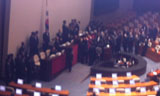 22일 오후 한나라당 의원들이 국회 본회의장을 전격 기습 점거했다. 한나라당 의원들은 이날 오후 국회 예결위 회의장에서 정책 의원총회를 가졌다....