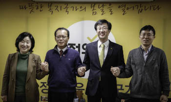 정의당, 노동당, 국민모임, 노동정치연대 4개 정당.정치조직 대표들이 모여 본격적인 진보정치세력 통합을 선언했다.