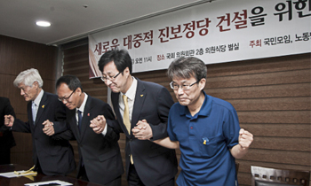 노동당 진보결집 추진 그룹이 지난 4일 정의당-노동당-국민모임-노동정치연대 4자 대표의 ‘새로운 대중적 진보정당 건설을 위한 공동 선언’을 실행...