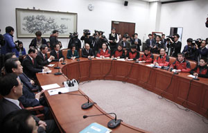 7일 오후 공무원연금 개혁 논의를 위해 김무성 새누리당 대표 등 여당 지도부와 이충재 공무원노조 위원장등 ‘공적연금강화를 위한 공동투쟁본부’(공...