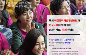 일명 쪼개기법으로 알려진 기간제법 때문에 정리해고를 당했던 대형마트 비정규직 여성노동자들의 삶과 해고에 맞선 저항을 소재로 한 영화 ‘카트’가 ...