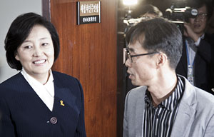 박영선 원내대표는 17일 오후 국회 대표실에서 기자회견을 열고 일단 비상대책위원장직을 사퇴하되, 원내대표직은 세월호 문제 해결까지 최선을 다해 ...