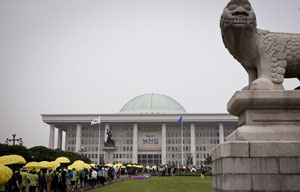 세월호 가족들, 국회 본관 앞에서 수사권·기소권 가진 특별법 밤샘 호소