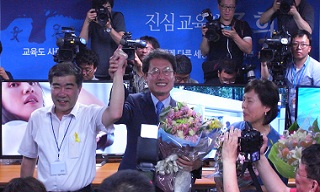 6.4 서울시 교육감 선거에서 조희연 민주진보 단일후보가 예상을 뒤엎고 막판 대역전에 성공했다. 조 후보는 4일 자정이 넘어, 정동 선거 사무소...