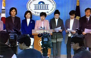 김현미·은수미 의원 등 민주통합당 진보행동모임 소속 9명의 의원은 26일 오전 국회 기자회견장(정론관)에서 기자회견을 열고 대선 이후 잇따른 노...