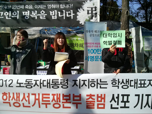 대선을 29일 앞 둔 20일 오전 서울 대한문 앞에서 노동자 대통령 후보인 김소연 후보를 지지하는 대학생 선거투쟁본부(이하 대학생 선본)가 발족...