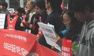 시리아 사태가 발발한 지 2년이 되는 15일, 국내 평화 활동가들이 주요 대사관 앞에서 시리아에 대한 군사 지원에 반대하는 동시다발 1인 시위를...