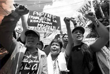 메가폰에서는 계급 전투라는 말이 흘러나온다. “위기를 뿌린 자는 분노를 거둘 것이다”라고 한 여학생이 소리친다.