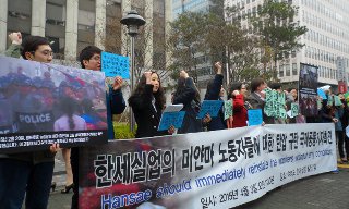 한세실업이 하루 1달러의 임금인상을 요구하는 미얀마 파업노동자들을 대량 해고하고 복직 요건으로 준법서약을 강요했다는 논란이 일고 있다. 한세실업...