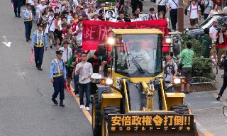 日 평화헌법 유린한 아베 정권 반대 불도저 시위 등장