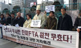 한미FTA저지범국민운동본부(범국본)는 돼지고기 관세 2년 유예나 의약품 허가, 특허연계 제도의 3년 유예는 구색맞추기에도 한참 못 미치는 수준이...