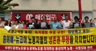 이랜드일반노동조합과 뉴코아노동조합을 지지하는 울산지역 노동.시민사회단체 연석회의는 23일 오전 11시 북구 홈에버 울산점 앞에서 기자회견을 열어...