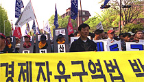 한미FTA저지 범국민운동본부(범국본)는 24일 청와대 앞 청운동 동사무소 앞에서 기자회견을 갖고 ‘한미FTA 협상 중단과 김현종 통상교섭본부장 ...