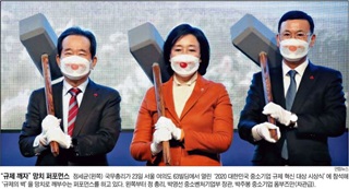 ‘일터의 죽음’을 막으려 산재 유가족들이 단식하던 크리스마스 이브 아침에 본 조선일보 8면엔 총리와 중소벤처기업부 장관이 망치를 들고 서 있었다...