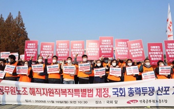공무원 노동자들이 올해 안 ‘해직 기간의 경력을 인정하는’ 해직공무원 특별법 제정을 촉구하며 국회 농성에 돌입했다. 공무원노동자 복직 관련 법안...