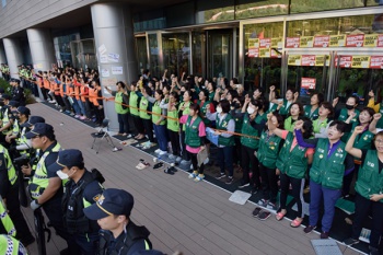 아시아나 항공기 청소노동자 해고 관련 투쟁 문화제 준비과정에서 참가자와 용역간의 충돌이 발생했다.