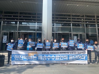 한진택배가 배송 수수료 인하 방침을 일방적으로 통보해 비판이 일고 있다. 서비스연맹 전국택배연대노조는 23일 오전 11시 30분 한진택배 본사 ...