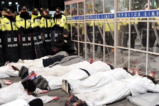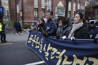 한국마사회 고 문중원 열사 문제 해결을 요구하며 5일째 오체투지 행진이 이어지고 있는 가운데, 경찰이 청와대 방면 행진을 가로막으면서 충돌이 발...