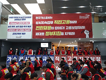 공공운수노조 한국가스공사비정규지부(이하 노조)가 13일 부분파업에 돌입했다. 동시에 한국가스공사 15개 지역본부 앞에서 농성을 시작했다. 한국가...