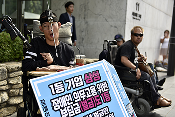 장애인일반노조준비위원회(이하 노조)가 삼성전자의 ‘장애인 배제’를 규탄하며 1일 1인 피켓 시위에 돌입했다. 더불어민주당 송옥주 의원실에 따르면...