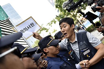 검찰은 21일 오후 서울남부지방법원에서 열린 민주노총 특수공무집행방해 치상죄 혐의 결심 공판에서 △민주노총 김억 조직쟁의실장에 징역 4년 △한상...