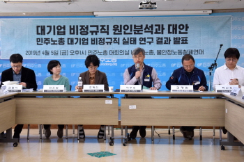 전국민주노동조합총연맹과 전국불안정노동철폐연대는 5일 민주노총 대회의실에서 ‘대기업 비정규직 실태 연구 결과’를 발표했다. 연구 결과에 따르면 기...
