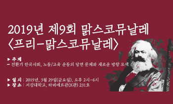아홉 번째 맑스코뮤날레를 앞두고 노동 현장의 문제와 향후 전망을 토론하는 사전 행사가 열린다. 제9회 맑스코뮤날레 조직위원회는 오는 29일 오후...