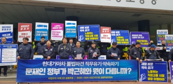 현대기아차 비정규직 노동자들이 노동부의 직접고용 시정명령과 현대기아차 원청의 교섭 참여를 요구하며 서울고용노동청 앞 농성에 돌입했다. 지난해 불...