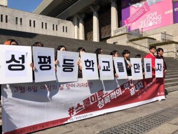 3.8 여성의 날을 맞아 스쿨미투 고발에 나선 이들은 학내 성폭력의 역사를 끝내자고 외쳤다. 이들은 지난해 제기된 학내 성폭력 고발은 몇몇 학교...
