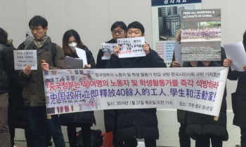 민주노총 등 중국 당국의 노동운동 탄압 항의...“즉각 석방하라”