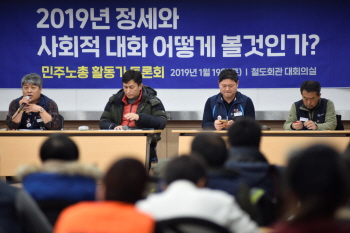 김호규 금속노조 위원장은 “탄력근로시간제, 최저임금 결정제도 개악 등 자본 편향적으로 가는 경사노위에 민주노총이 참여하는 것은 부적절하다”며 “...
