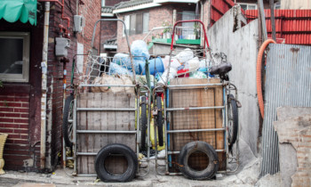 라면박스와 각종 택배 상자가 차곡차곡 포개졌다. 깨끔히 쌓였지만 가까이 가면 냄새가 코를 찌른다. 허리 굽은 할머니의 키 두 배쯤 종이쪼가리가 ...