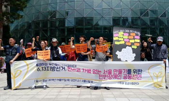 빈곤사회연대가 7일 서울시청 앞에서 개최한 기자회견에서는 지방선거를 앞두고 오히려 삶의 터전이 철거되고 있는 빈민들의 성토가 쏟아졌다. 이들은 ...