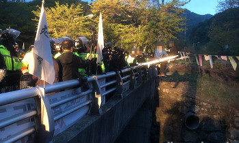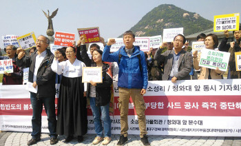 사드 반대 단체가 23일 국방부의 사드(THAAD·고고도미사일방어체계) 기지 보수 공사 관련 장비를 반입한 것에 “사드 완전 배치를 위한 것”이...