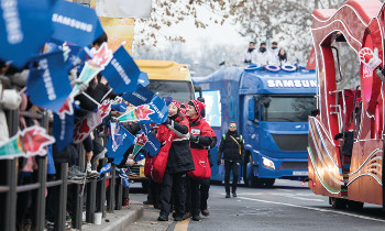 성화 봉송을 보기 위해 모인 시민들은 삼성, 코카콜라 등의 손깃발을 들었다. 성화 봉송 주자를 한참을 기다리다 지쳐가는 시민에게 코카콜라 관계자...