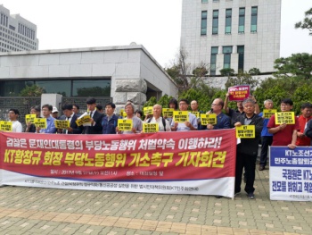 KT 노동자를 비롯한 KT 민주화를 바라는 노동사회단체들이 부당노동행위로 고발된 황창규 KT 회장을 즉각 기소하라고 검찰에 촉구했다.