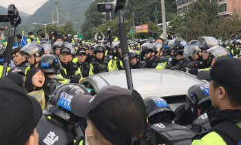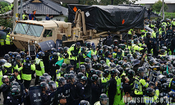 6일 오후 11시 40분 소성리 마을회관 앞에서 경찰이 본격적으로 사드 발사대 추가 배치에 나서자 주민들은 화가 났다. 경고 방송에서 경찰이 ‘...