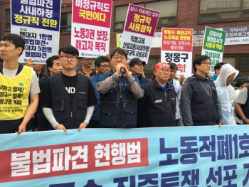 현대기아차 비정규직과 노조파괴 사업장 등이 노동3권 보장 및 불법파견 정규직화를 요구하며 청와대 앞 농성을 시작했다. 농성에 나선 노동자들은 대...
