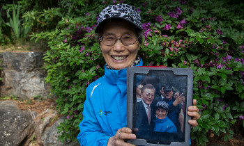 문재인 대통령의 사저 출근 마지막 날, A씨(87세)는 아침 일찍 남편과 사저(금송힐스빌) 입구를 지켰다. 이틀 전 대통령과 태블릿 PC로 찍은...