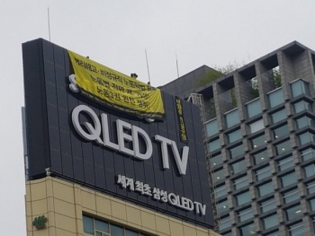 정리해고, 노조 탄압으로 수년째 길거리 투쟁 중인 노동자 6명이 광화문 사거리 광고탑에 올라 고공 단식농성에 돌입했다.