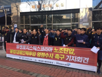 파업 11차를 맞은 유센로지스틱스코리아 노동자들이 고용노동부를 찾아 파업 후 벌어지는 불법 대체인력투입 수사를 촉구했다. 이들은 고용노동부가 특...
