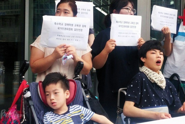 전국장애인부모연대 등 4개 단체는 26일 국가인권위원회 앞에서 기자회견을 열고, 특수학교에서 벌어지는 장애학생 교육권 침해 사례에 대한 집단 진...