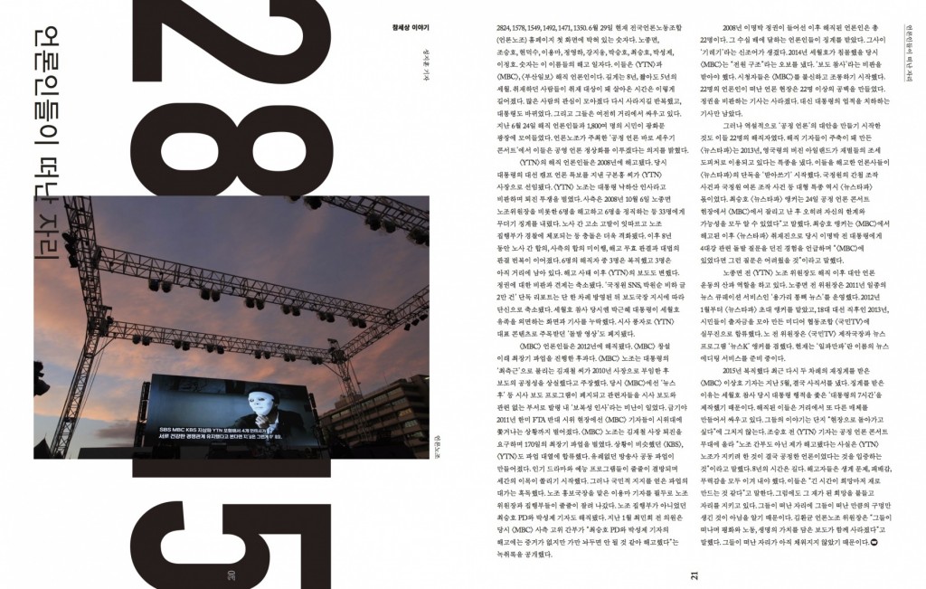 워커스의 판형은 가로 220mm, 세로 280mm이고 이번 호 여백은 바깥 7.056mm, 안쪽은 24.644mm이다. 본문은 9.75pt, 행...