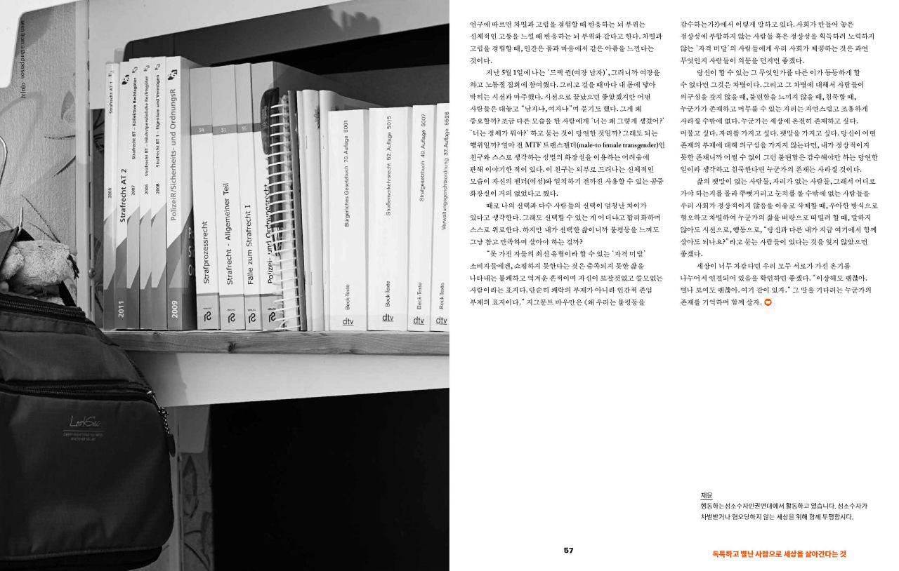 나는 성소수자이기도 하지만 시각 장애가 있다. 다섯 살에 겪은 사고로 오른쪽 눈 시력을 대부분 잃었다. 그러다 보니 오른쪽 눈에는 초점이 없었고...
