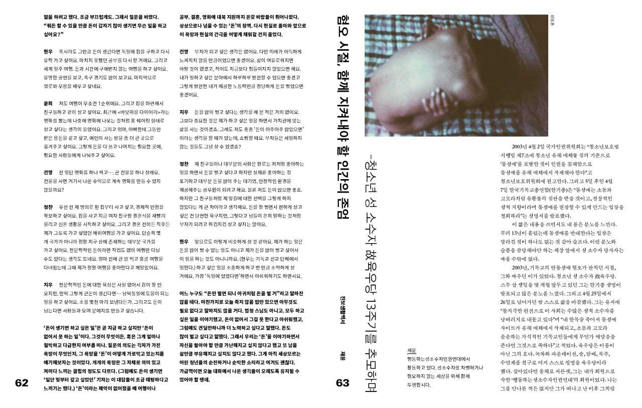 2003년 4월 2일 국가인권위원회는 “〈청소년보호법〉 시행령 제7조에 청소년 유해 매체물 심의 기준으로 ‘동성애’를 표방한 것이 인권을 침해하...