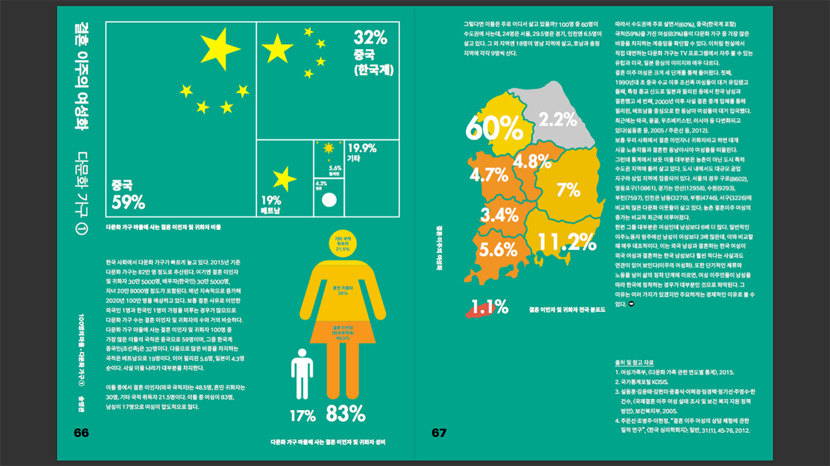 다문화 가구 마을에 사는 결혼 이민자 및 귀화자 100명 중 가장 많은 이들의 국적은 중국으로 59명이며, 그중 한국계 중국인(조선족)은 32명...