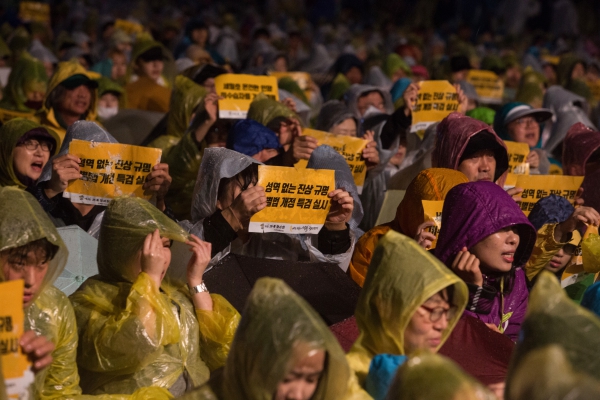 오후 7시, 1만 2천 명의 시민들은 광화문 광장에서 폭우 속 범국민 추모문화제를 개최했다. 추모문화제 참가자들은 지난 2년간 줄곧 외쳐왔던 ‘...