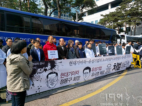 서울시청광장에서 23일 오후 1시 열린 ‘우리는 유성노동자의 죽음에 침묵하지 않겠습니다!’ 노조파괴-노동자 괴롭히기 중단, 유성-현대기아차 처벌...