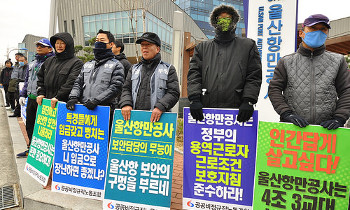 울산항만 특수경비노동자 40여 명이 계약 만료로 사실상 집단해고 처지에 내몰려 문제가 되고 있다. 이들은 울산항만공사와 울산항 앞에서 시중노임단...